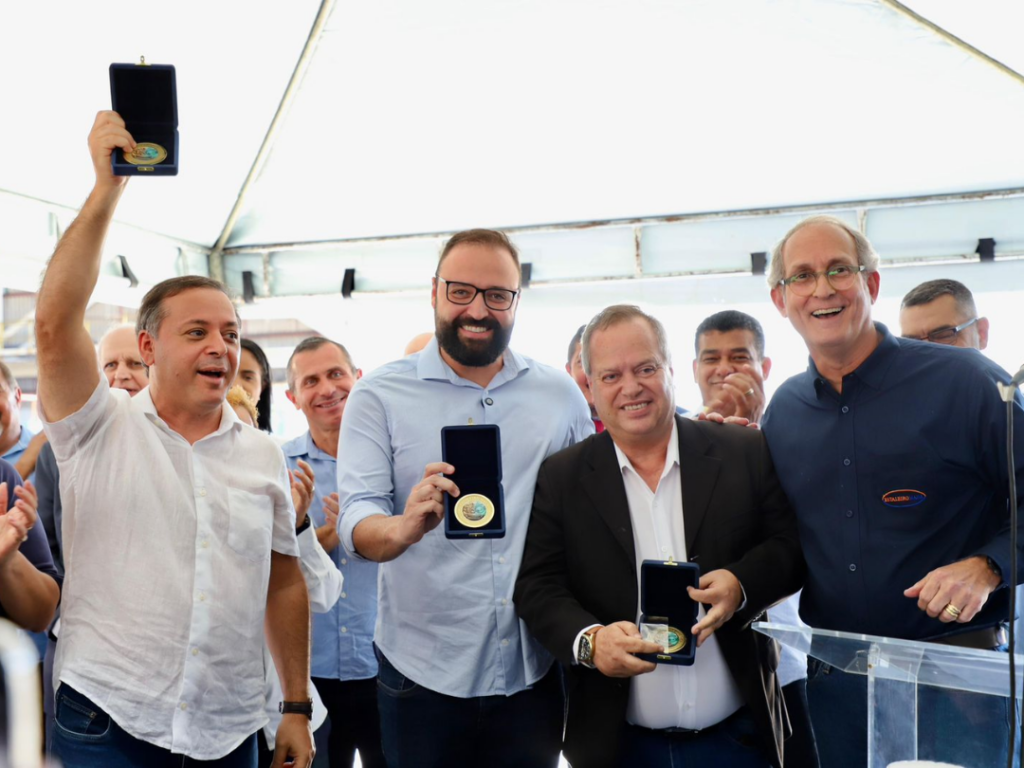Nesta terça-feira (14), o CEO do Estaleiro Mauá, Miro Arantes, e o Prefeito de Niterói, Rodrigo Neves, assinaram o termo de adesão do Estaleiro Mauá ao Refis Municipal do Setor Naval. A cerimônia, realizada nas instalações do Mauá, contou com a participação de autoridades municipais e estaduais, além de colaboradores do Estaleiro.